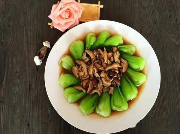 原料: 油菜 香菇 生抽 蚝油 油盐