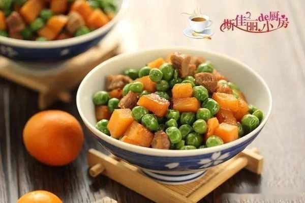 制作:里脊肉丁加入少许盐、生抽、料酒和淀粉等调味料,拌均匀腌制一下; 烧热水加入少许盐和几滴油,将青豆和红薯丁放入锅中焯煮九成熟后捞出来备用。烧热锅放入适量的油, 将肉丁放入锅中翻炒至变色,加入焯好的青豆和红薯丁进去翻炒几下,最后加入适量的盐调味翻炒均匀即可。
