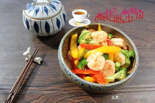 制作: 鲜大虾去壳后挑出虾线, 处理好的虾仁加入少许盐、料酒、淀粉和姜末等调味料拌均匀; 烧锅水加入盐和油,将西蓝花放入锅中烫变色后捞出。烧热锅放入适量的油,放入虾仁进锅翻炒至变色; 加入西蓝花进锅翻炒,加入红黄甜彩椒进锅翻炒几下,最后加入少许盐调味,翻炒均匀即可。