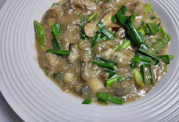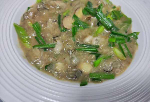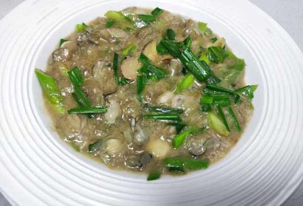 海蛎子、淀粉、蒜苗、姜、盐、酱油、油、水