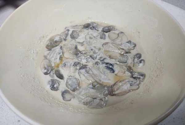1.海蛎只需要简单地清洗一下,不要过度清洗。洗好后捞出来加淀粉,可以QQ跳,加淀粉煮也很好吃;