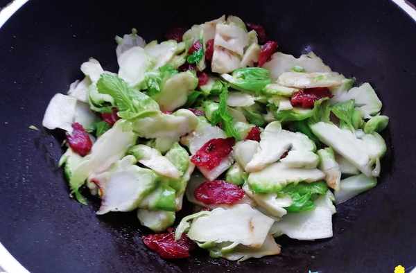 2)儿菜本身就很嫩,所以无需削去外皮,其实,连着外皮切来炒,更脆爽可口。