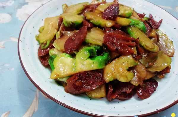 1)腊肠的外层膜是可以食用的,去不去掉看个人,心理作用吧,我还是喜欢剥掉外层皮才切成片,感觉这样炒出来的腊肠,口感更好。