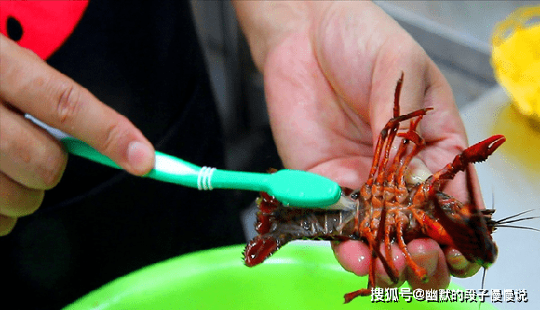 ,在清洗的时候,要抓住小龙虾的后背,用刷子刷洗龙虾的腹部和爪子根部。第一次清洗小龙虾的水非常脏,所以必须多次刷洗。
