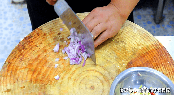 不沾水切断,葱白切丁,准备脱过皮的