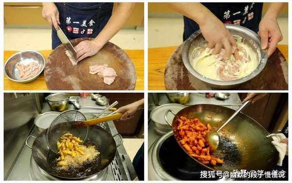 3.油温四成热下入肉条