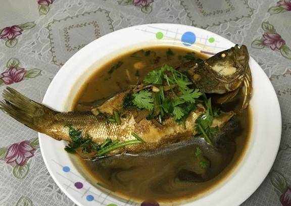 方法:把鲈鱼肚子的黑膜撕去并清洗干净,可以减少鱼的腥味,再晾干水分。炒锅烧热加入食用油,下葱香爆香,放入鲈鱼,开大火,煎至底面金黄翘边后翻面,再煎另一面,然后烹入料酒去腥增香,加酱油和温水烧开(喜欢吃鱼冻的可以跟我家一样,水多加点)加盖转小火,炖至鱼肉熟烂入味,出锅前撒上香菜即可。