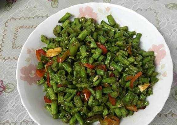 食材:豇豆,青红杭椒,食用油,蒜头,食盐,酱油
