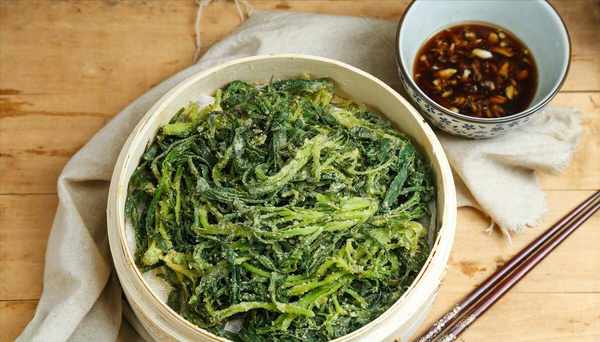 3、锅中加入适量的水,蒸笼上铺一层干净的粗棉布,将拌好的面条均匀地铺在粗棉布上。水大火烧开后,蒸5分钟。蒸好后关火,开盖取出面条。用筷子快速把面条分开,这样面条就不容易粘在一起了。准备一碗酱汁,将适量的蒜切碎放入碗中,加入少许香醋、生抽和香油,再加入适量的盐和味精,用筷子搅拌均匀。