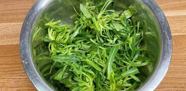 温馨提示:有些人面条不焯水直接吃。虽然面条不含任何对人体有害的物质,但由于面条的生长环境,加上是野菜,小编还是认为一定要焯水,这样不仅可以有效杀灭虫卵,菌,吃起来也更放心。