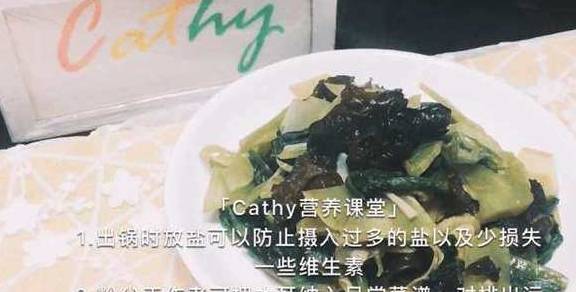 1、cathy在制作这道菜谱时,选择了在出锅前放入盐调味,这样一方面可以防止摄入过多的盐,另一方面也可以避免损失一些维生素