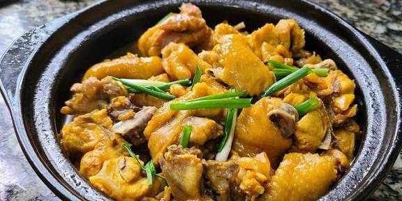 盐焗鸡煲配料:鸡胸肉、洋葱、姜片、大蒜、洋葱。