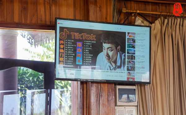 此外,渝帆还注意到,老挝这边用餐都是坐长桌,不知道是不是因为曾经是法国的殖民地,从而受到了影响,虽然也有圆桌,他们称其为中国桌。另外,虽然餐厅的工作人员基本上不会汉语,但餐厅的音乐却有很多来自中国(也有泰国歌曲)。
