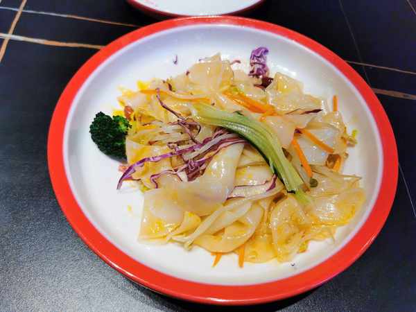 作为西北菜馆,凉皮肯定是招牌之一。店里有麻酱凉皮和酸辣凉皮可选,小姑子喜欢吃酸甜口,所以选择了酸辣凉皮。这道菜一上来就很有食欲,简单拌拌后就可以开吃了,凉皮的口感很筋道爽滑,味道微酸微辣,红油很香,但是偏清淡,吃起来不够过瘾。
