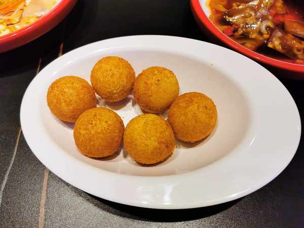 油炸过后的大黄米汤圆,看上去有点像香芋丸子,不过比香芋丸更加鲜香。咬上一口,外皮酥脆可口,内馅爆汁,甜度恰到好处,丝毫不甜腻。不过就是要注意,一定要多晾晾,不然嘴巴会受罪……