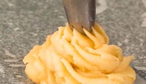 粉浆加入挤袋,在烤盘上挤上曲奇。