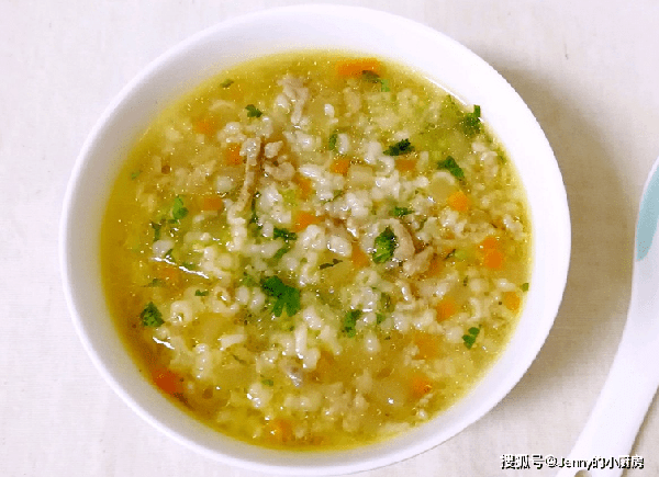 最后倒入肉丝快速搅散,煮到肉丝熟透,加盐调味。再放入葱花、油搅拌均匀,这道早餐就做好了。