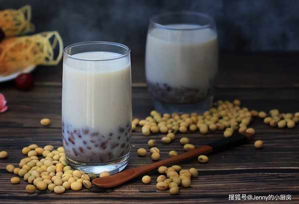 煮好后装进碗内,再将豆浆过滤进装有红豆的碗中,就做好了。