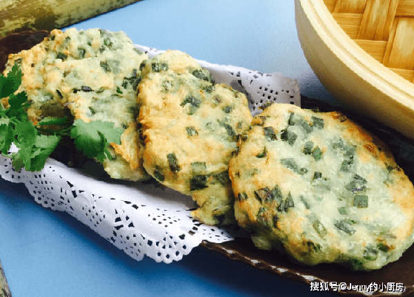 接着给锅内加油,烧热后转小火,放入适量面糊,烙到两面金黄,饼就做好了。