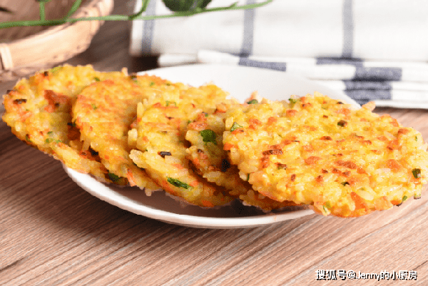 接着给锅内加油,放入适量米饭糊,烙到两面焦黄,这款早餐就做好了。
