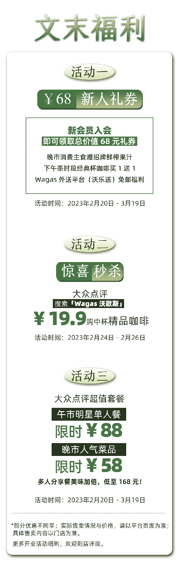 健康和新鲜,美味与营养, Wagas围绕着这些关键词展开,引领了一种生活潮流。 店里主打全时段菜单,针对不同时段,从早餐到brunch、从午餐到下午茶再到晚餐……都能找到属于自己的食物。无论是一人食或是多人聚餐、运动前后或者休闲时光, Wagas都能为你呈现当季时令的自然料理!
