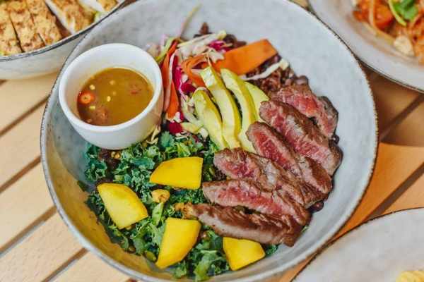 Wagas的“明星菜品”, 7分熟的牛肉鲜嫩不会过生,丝滑牛油果以及多种蔬菜增加更多层次感,再配上一份富含膳食纤维的 杂粮米饭,吃饱又扛饿!健身人士也很爱!