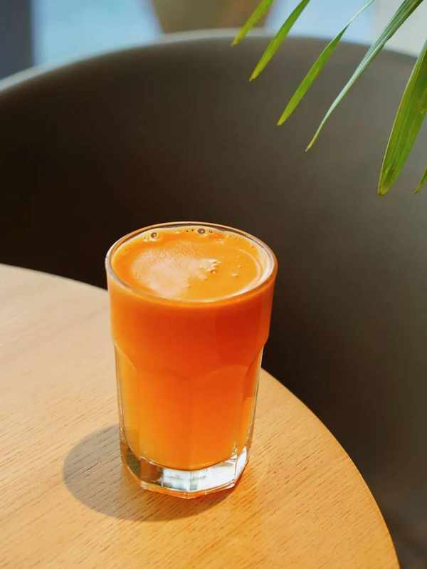纯鲜榨果蔬汁!每一杯都坚持用真材实料,鲜榨 胡萝卜、苹果,不加水不加糖,原汁原味,甜度适中, 补充维生素,果蔬营养up up up!额外加入了生姜,让整杯果汁还有暖胃的功效!