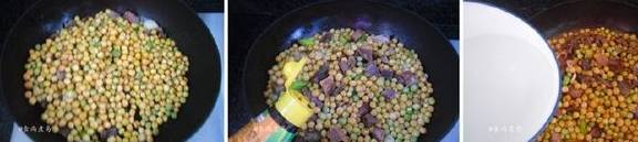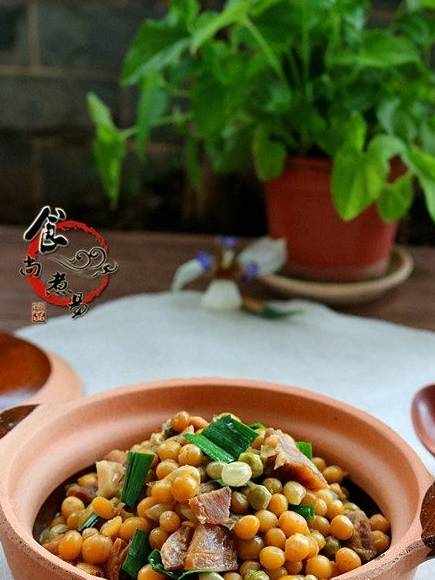 食尚小贴士:咸肉和酱油都有咸味的,不用加盐刚刚好,也可以换成咸骨或腊肉搭配,豌豆要煸炒出香味,煮软烂才盛入砂锅中,假若没经过炒锅炒熟就放人砂锅中烹调,容易糊底粘锅,影响口感。