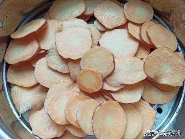 切地瓜的时候,带着皮一起,用水冲洗浸泡一会,可去掉里面的淀粉。