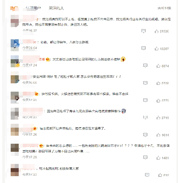 有网友表示不理解:“去吃海底捞的快乐又少了一分”、“我带过,因为她没有那个菜品”。