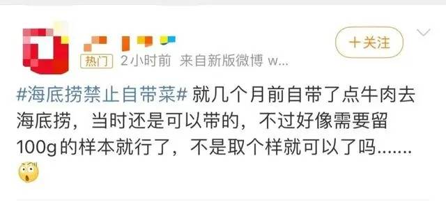 以前连螃蟹都帮忙处理的海底捞,开始谢绝自带食材了。今天(23日),“海底捞禁止自带菜”引发热议,冲上微博热搜。