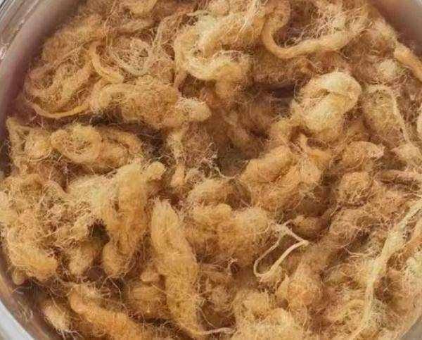 优质肉松颜色为金黄或淡黄色,颜色均匀,里外一致,呈疏松絮状或丝状,没有粉状物,也没有结块变质发霉等现象,闻起来有肉香味,吃起来肉质鲜嫩,无肉筋碎骨,无渣滓,入口即化。