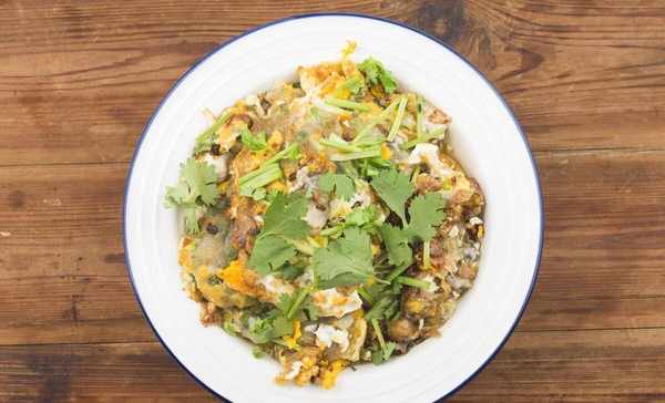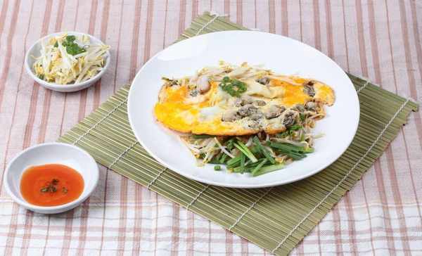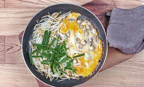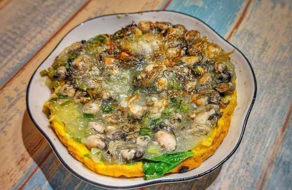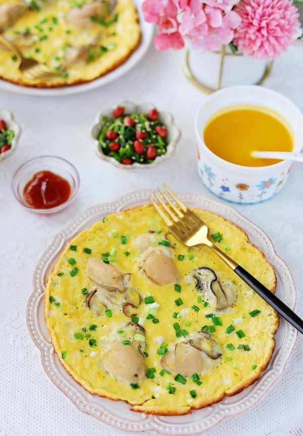 做法:海蛎洗干净备用;红薯粉加水调成稠浆,倒入洗净的海蛎、切细的青蒜、鱼露;热锅下多油,将调好的海蛎浆倒入锅中,两面煎黄,鸡蛋液淋一圈装盘即可。