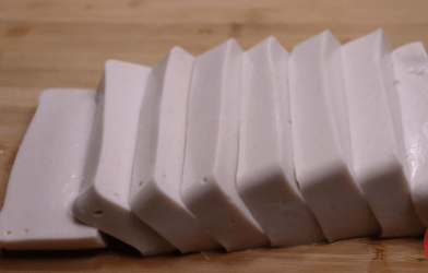 11、像这样做好的花生豆腐,可以用来炒菜,凉拌,或者是直接热着吃,都是可以的,接着我再给大家分享一个花生豆腐的做法。