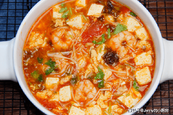 二、番茄虾仁豆腐汤