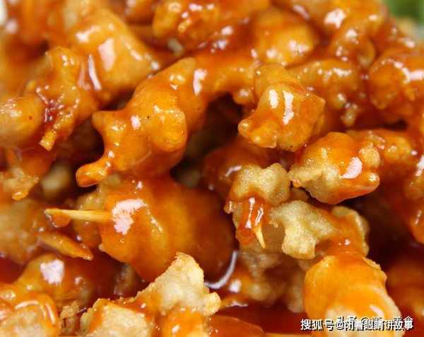 锅里加入一勺清水、一勺白糖、一勺白醋,搅匀后加入番茄沙司,水开后勾入水淀粉,熬至冒泡加入植物油,再加少量的食盐化开,最后,把糖醋汁浇到牙签肉上美味即成。