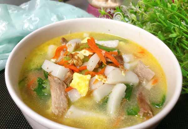 用糯米粉为原料,加水加食用油揉成团塑形,然后再蒸熟就是年糕,年糕吃法比较多样,平常用来蒸,煎,烤,炸,炒都非常美味,今天给大家分享一道蔬菜年糕汤,一起看看吧~