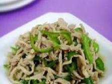 材料肉丝,花椒粉,胡椒粉,油,料酒,盐,青椒做法