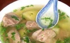 2、羊肉用开水汆去血污,倒入陶制盆内,加入姜、葱段、萝卜、开水(以没过羊肉为限),再放在锅内的小铁架上,锅内加适量的水(盆的下部分应跑在水中),盖紧锅盖,烧至肉烂时撇去浮油,捞去葱、姜、萝卜,吃时加入葱丝、香菜、醋、胡椒粉、香油、味精、盐等调味。
