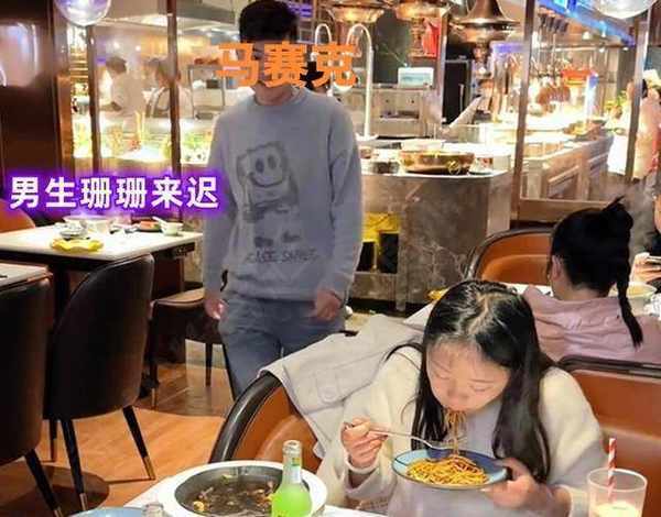 等到男子到场时,桌子上已经放着几个空盘子,不少菜明显也有被动过的痕迹,此时女生还在埋头吃饭。