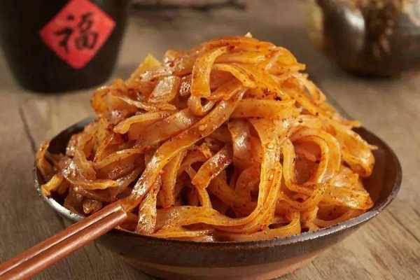 岐山擀面皮的美名远扬海内外以“白、薄、软、香”而闻名,具有筋道、柔软、凉香、酸辣可口、四季皆宜的特点,丰富的口感备受食客的喜爱,2011年被认定为“中华名小吃”。