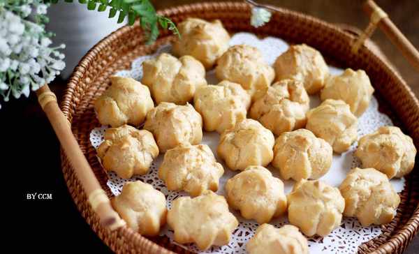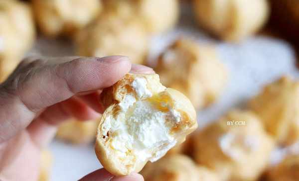4:泡芙如果出炉后立刻塌陷,就说明烘焙时间不足,泡芙内水分太多,下次制作时一定要延长烘焙时间