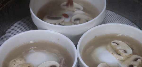 2、蒸香菇汤的时候,蒸锅里的水烧开后放入。