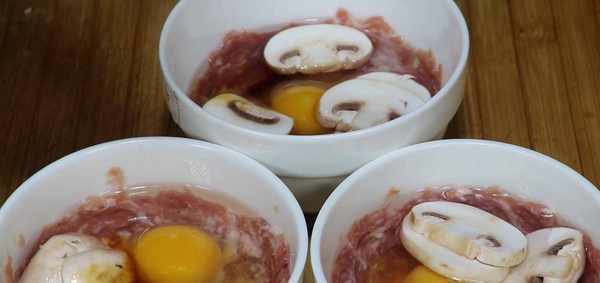 1.准备好的肉末,尽量多准备几碗。每个碗都应该用鸡蛋打碎。