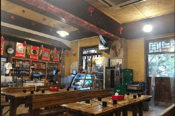 这是一家也并不起眼的餐馆,装修很简单,室内就是粉了墙,也没啥多余的装饰,只有进门时的一个大门帘显示出这是一家东北的餐馆。