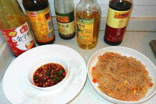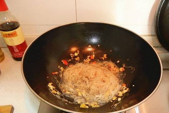 5.锅里剩余的调味汁炒泡好的粉丝,装盘。
