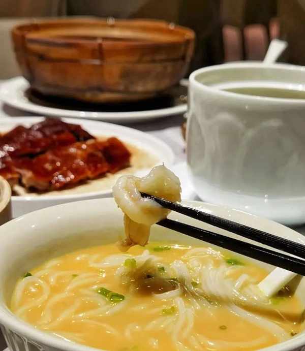 除了金牌烧鹅,同样不容错过的菜品还有:瑶柱海味什菜煲、天鹅榴莲酥、啫啫黑椒猪肚、竹笋尖虾饺皇等。