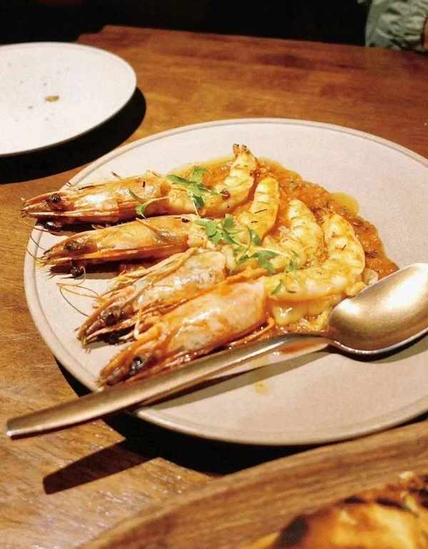 可以闭眼点的菜品有:面包篮配胡萝卜黄油、大虾配印度桑巴酱及烤蒜味印度烤饼、海胆和牛烤土司、烤章鱼配湖南樟树港辣椒泥