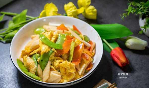 虽然只有一道简单的菜,但这道菜包括了胡萝卜、荷兰豆和山药鸡蛋。