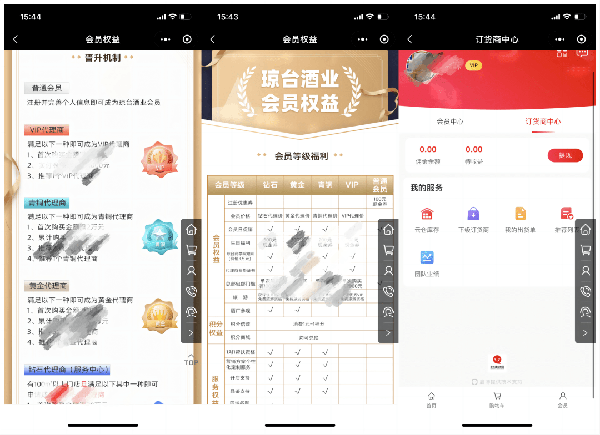 管理方式上,琼台酒业的经销商和终端商使用启博微分销同一套系统,完善的会员(经销商)晋升机制,满足指定条件后即可升级享有更多权益,只要是会员身份皆可在小程序商城内直接购买虚拟库存,分享自己的名片发展下级,在【会员】-【订货商中心】查看“云仓库存”、“下级订货商”、“出货单”、“团队业绩”等,启博微分销商城系统助力琼台酒业把经销商与总部、消费者三者的利益绑定在一起,还解决了经销商的行业痛点:压货。